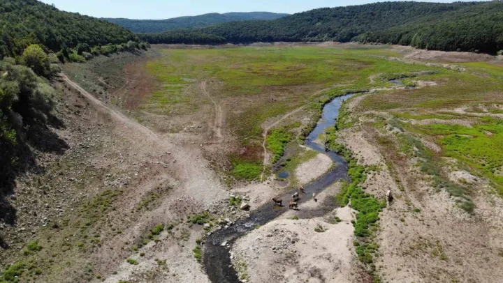 Hava sıcaklıklarının mevsim normallerinin üzerinde seyretmesi sebebiyle İstanbul'un su ihtiyacını karşılayan 10 baraj son 9 yılın en düşük seviyelerine kadar gerilerken, Kırklareli'nde bulunan Kazandere ve Papuçdere Barajlarında artık hayvanlar otluyor.