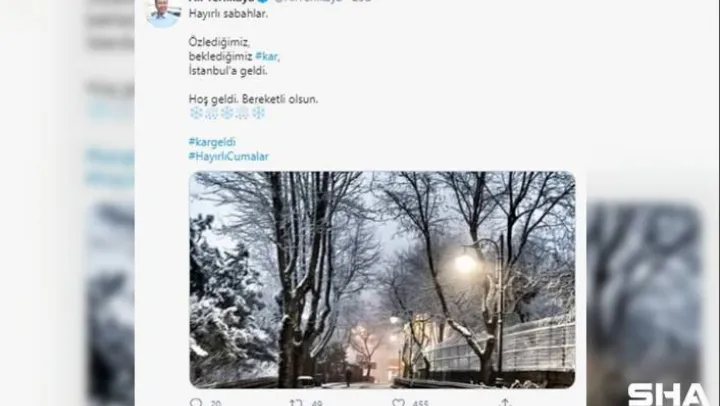 İstanbul Valisi Ali Yerlikaya, kar fotoğrafı paylaşarak, 'Özlediğimiz, beklediğimiz kar, İstanbul'a geldi. Hoş geldi. Bereketli olsun' ifadelerini kullandı.