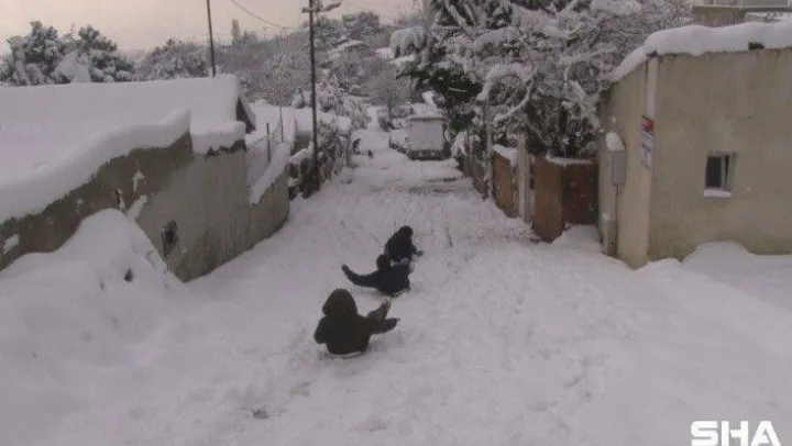 İstanbul'da dün akşam saatlerinden itibaren etkisini artıran kar yağışı nedeniyle sömestr tatilini de fırsat bilen çocuklar, günün ilk ışıklarıyla karla kaplı sokaklara hücum etti. Sabah saatlerinde kuvvetini iyice arttıran kar nedeniyle başta İstanbul'un yüksek kesimleri olmak üzere birçok ilçede kar kalınlığı 15 santimetreye ulaştı. Pendik'te bulunan Aydos Tepesi'nde ise kar kalınlığının yer yer 20 santimetreyi bulmasıyla poşetlerini alan çocuklar soğuk havaya aldırmadan karla kaplı sokaklardan kayarak doyasıya eğlendi.