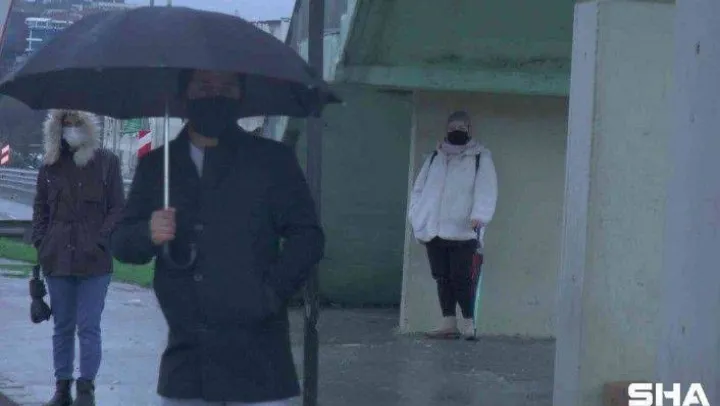 İstanbul'da hafta sonunun ilk gününde sabah saatlerinden itibaren yağmur yağışı ara ara etkili oluyor. İşe gitmek için duraklarda bekleyen ya da sokakta yürüyen vatandaşların kimisi şemsiyeyle kimisi de montuyla yağmura karşı önlem aldı. Kimi vatandaşların da üst geçit merdivenlerinin altına sığınarak ıslanmaktan kaçtığı görüldü.