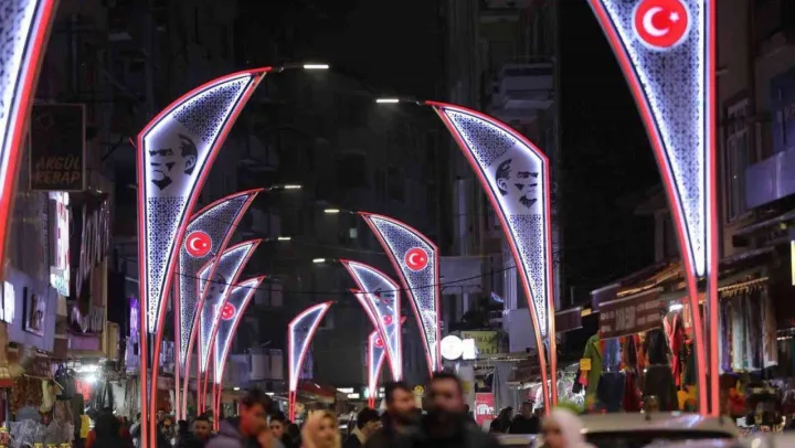 İstiklal Caddesi Atatürk motifli ışıklarla aydınlanıyor