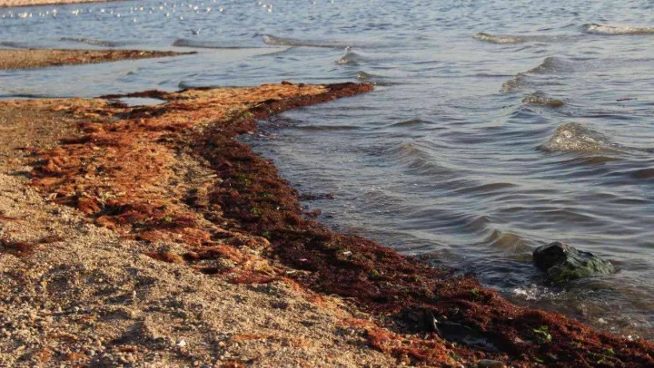İzmit Körfezi sahil şeridi kırmızı yosunla kaplandı