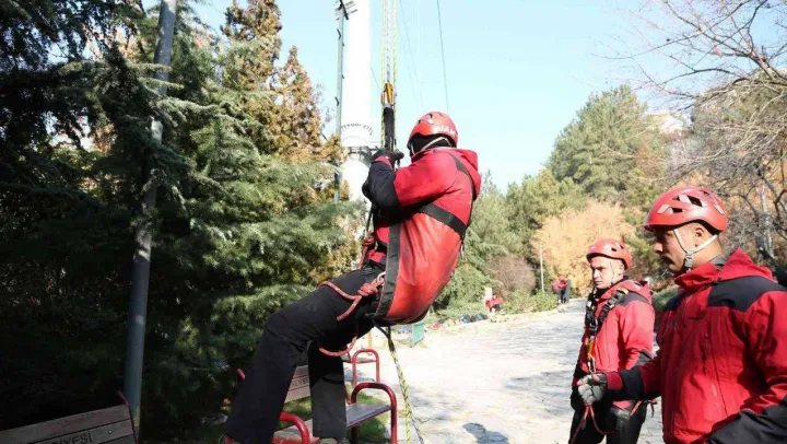 Jandarma Genel Komutanlığı bünyesindeki Jandarma Arama Kurtarma Timleri, Ankara Keçiören'de teleferikte kurtarma tatbikatı düzenledi.