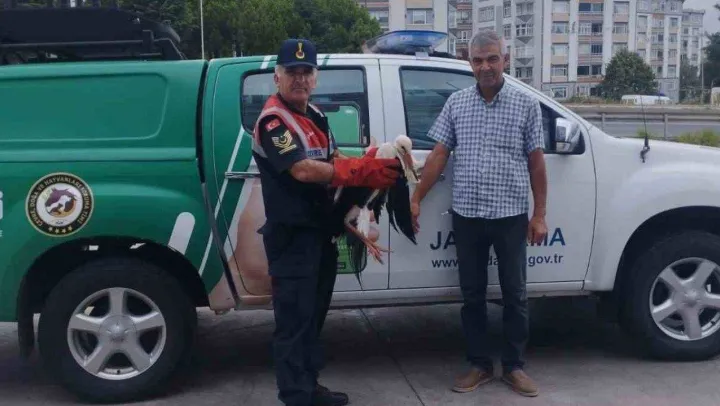 Jandarma, devriye faaliyetinde yaralı leylek buldu