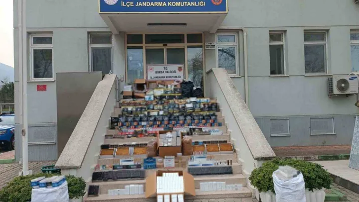Bursa İl Jandarma Komutanlığı ekiplerince kaçakçılık ile mücadele edilmesine yönelik yapılan operasyonlar çerçevesinde alınan ihbarı değerlendiren Yıldırım İlçe Jandarma Komutanlığı ile KOM Şube Müdürlüğü ekipleri, Karapınar Mahallesi'nde bir işletmenin yakın çevresinde bulunan okullardaki öğrencilere ve vatandaşlara kaçak sigara sattığını tespit etti. Operasyon için düğmeye basan ekipler, A.T. (59) ve M.T.'ye (33) ait işletmede çok sayıda kaçak malzeme ele geçirdi. Ekipler, işletmeye yaptıkları operasyonda bandrolsüz olarak satılan ve yaklaşık değeri 1 trilyon 30 bin lira olan 24 bin 100 adet çeşitli marka sigara, 75 bin 499 adet makarona tütün basılmış sigara, 41 kilogram kıyılmış tütün, 38 bin 600 adet boş makaron, 58 bin 50 adet sigara kağıdı, 22 bin 540 adet sigara filtresi, 19 adet puro, 30 adet elektronik sigara ve 23 adet elektronik sigara likidi ele geçirdi. Bandrollü olarak satılan 69 bin 200 adet çeşitli marka makaron, 19 kilogram çeşitli marka tütün ve 82 adet çeşitli marka nargile tütünü ele geçirildi. Faturasız olarak satılan 6 adet bluetooth kulaklık ve 10 adet iPhone şarj aletine de el koyan ekipler, şahıslar hakkında adli tahkikat başlatarak 83 bin 709 lira idari para cezası kesti.