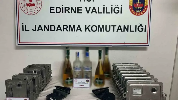 Edirne'de jandarma ekiplerince yol kontrol noktasında bir otomobilde yapılan aramada bagaj ve motor kaput bölümüne gizlenmiş gümrük kaçağı olduğu tespit edilen 13 adet araç beyni, 1 adet araç buzdolabı, 2 adet ayna mekanizması ve 7 litre alkollü içecek ele geçirildi.