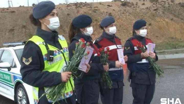 Jandarmadan kadın sürücülere Kadınlar Günü sürprizi