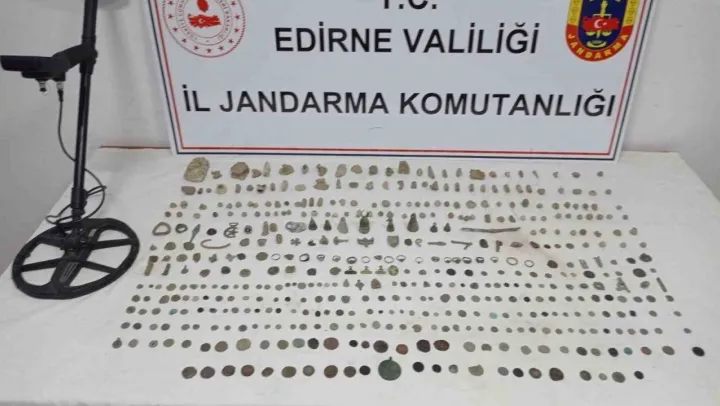 Edirne İl Jandarma Komutanlığı ekipleri, tarihi eser kaçakçılığı operasyonu düzenledi. Operasyonda, Roma ve Bizans dönemine ait 237 adet sikke, 73 adet metal obje, 175 adet taş obje, 16 adet yüzük, 4 adet mühür ve dedektörleri birlikte 501 parçadan oluşan tarihi eserleri kaçırmaya çalışan 1 kişi hakkında gerekli yasal işlemler başlatıldı. Olayla ilgili başlatılan soruşturma sürüyor.