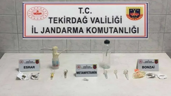 Tekirdağ merkez Süleymanpaşa ilçesi Altınova Mahallesi'nde de R.D. isimli şahsın ikametinde uyuşturucu madde tespit edilmesi üzerine Tekirdağ İl Jandarma Komutanlığı unsurlarınca yapılan aramada; 40 adet sentetik hap, 20 gram metamfetamin, 5 gram bonzai, 3 gram esrar, 1 adet uyuşturucu madde kullanma aparatı ele geçirildi. Şahıs, ifadesi alınmak üzere gözaltına alındı.