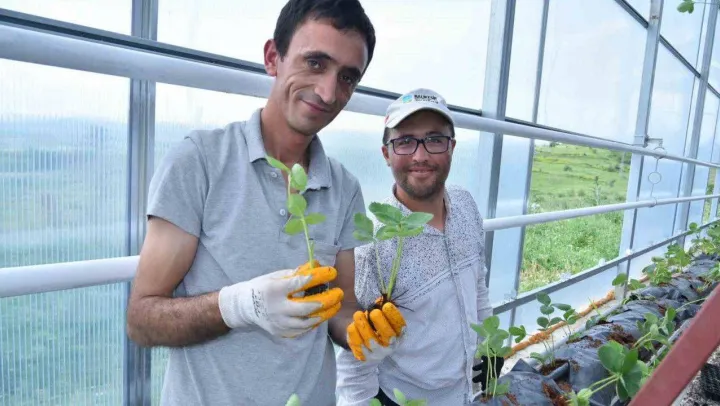 Çiftçilere örnek olabilmek maksadıyla ilk üretime başladıklarını belirten Ziraat mühendisi Mehmet Demircan 'Şu anda da mesela bu alanda da çiftçimize örnek olabilmek için kapalı alanda topraksız tarım olarak sadece biz bu çilek üretimini açık alanda tarlalarımızda değil de, kapalı alanda ne kadar çok verim alabiliriz onun için mücadele ediyoruz. Şu anda dikimlerini gerçekleştiriyoruz. 10 bin adet fideyi şuanda topraksız tarımda buluşturuyoruz. Çilek üretimindeki verim kapalı alanda ne kadar verim arttırabilirsek kalitelisini de yükselterek bir yanda da sera alanımıza yakın bölgemizde de kurutuma tesisimiz var. Kurutma tesisinde bu çileklerin kuruması için orada kurtulmasını ve pazarlanmasını sağlayacağız' dedi.