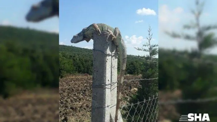Çatalca'nın Kabakça Mahallesi'nde yolda seyir haldeyken 112'de sağlık görevlisi olarak görev yapan Recep Özer tarafından fark edilen dev iguana Orman Bakanlığı ekipleri tarafından koruma altına alındı. İguananın bakılan evden korkarak kaçtığı düşünülüyor.