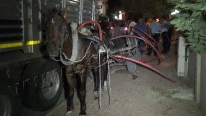 Silivri'de BEDAŞ'a ait depodan kablo çalan hırsızlar, durumu görevlilerinin fark etmesi üzerine hırsızlarla görevliler arasında çıkan kovalamaca sonucunda hırsızlar at arabasını bırakarak kaçtılar. Başıboş kalan at bir sitenin duvarı ile kamyon dorsesi arasına sıkıştı.