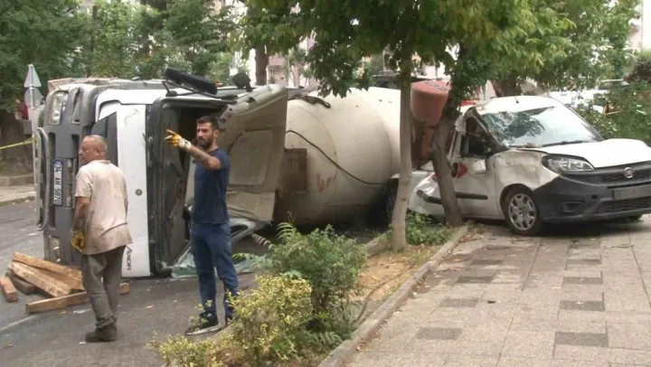 Kadıköy'de sokağa hızla giren bir beton mikseri park halindeki araçların üzerine devrildi. 4 aracın hasar gördüğü kazada beton mikseri sürücüsü hafif yaralandı.