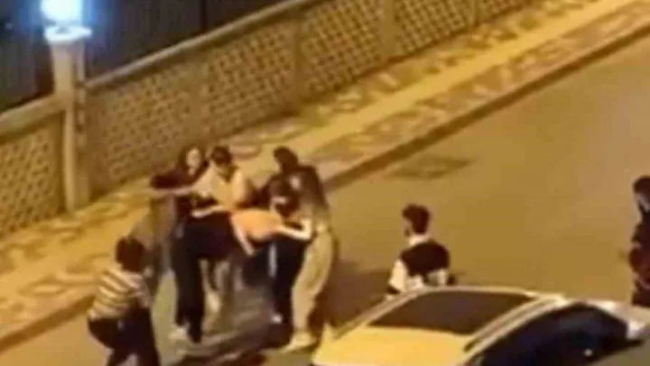 Bursa'da iki kadın grubu arasında sözlü tartışma çıktı. Kısa sürede büyüyen tartışma kavgaya dönüşünce kadınlar sokak ortasında saç saça birbirine girdi. O anlar kameraya yansırken, bir grup erkek ise kavgayı bir süre izlemeyi tercih etti.