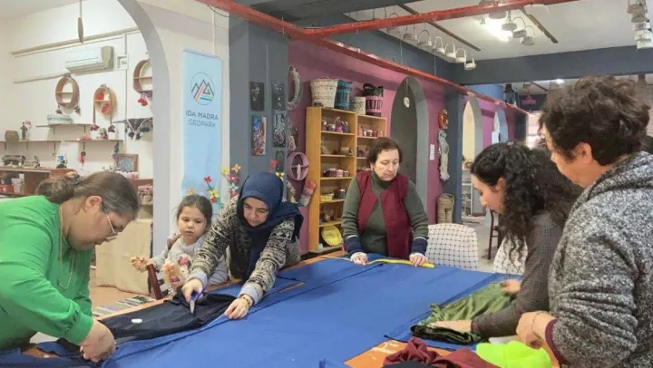 Sındırgı Belediyesi Akpınar Yaşam Merkezi üyesi kadınlar pandemi sürecinde de maske ve tulum dikerek destek vermişlerdi. Marifetli eller şimdi de depremzedeler için dikiş dikiyor.