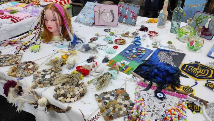 Pazarda ürünlerini sergileyen Kezban Karataş, 'El emeği ürünler yapıp bu pazarda satıyorum. Pano, nihale yapıyorum. Deniz taşı ve deniz kabuğundan da ürünler yapıyorum. Ürünlerimin fiyatları 25 liradan başlıyor, 200 liraya kadar çıkıyor. Pazarda el işi ürünler, takılar, örgüler, çantalar satılıyor' dedi.