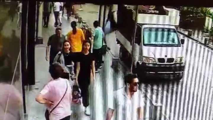 Kocaeli'nin İzmit ilçesinde 18 yaşındaki kağıt toplayıcısı kamyonetin kasasından düşerek yaralandı. O anlar güvenlik kamerasına yansıdı.