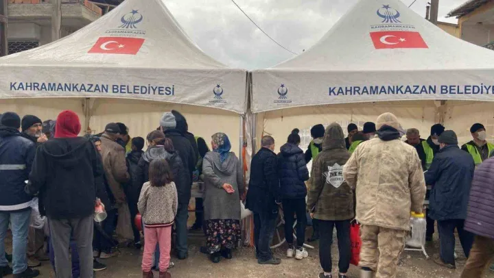 Kahramankazan Belediyesi'nin deprem bölgesindeki iftar ve sahurda yemek dağıtımı Ramazan ayı boyunca sürecek.