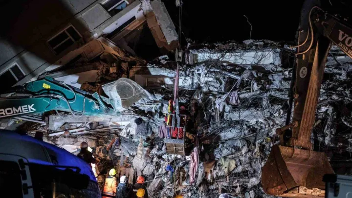 Kahramanmaraş'ın Yenişehir Mahallesi'nde depremde yıkılan binanın enkazında kalan evli çift, vinç yardımıyla enkaza giren madenciler tarafından 87 saat sonra sağ olarak çıkarıldı. Serkan Kocaoğlu kendisini kurtaranlara el sallarken, çiftin enkaz altından çıkarıldığı o anlar dron ile havadan görüntülendi.