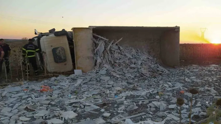 Kırklareli'nin Lüleburgaz ilçesinde D-100 karayolundan çıkarak ayçiçeği tarlasına devrilen kamyonun sürücüsü, sıkıştığı kabinden itfaiye ekipleri tarafından kurtarıldı.