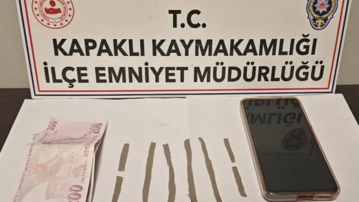 Kapaklı İlçe Emniyet Müdürlüğü ekipleri tarafından yapılan çalışmalarda C.T. isimli şüpheli şahsın üzerinde arama gerçekleştirildi.
