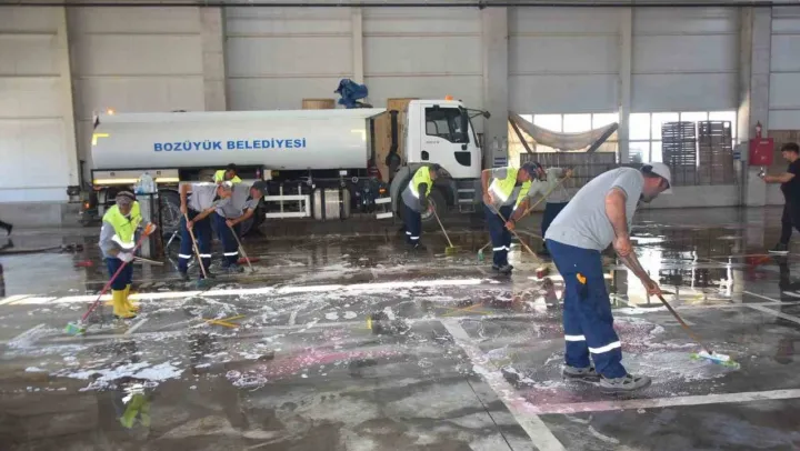 Haftada 2 gün hizmet veren ve Bozüyüklüler tarafından yoğun olarak kullanılan kapalı pazarda vatandaşların gıdaya ulaşımında hijyenik bir ortam sağlamak amacıyla mazgal temizliği ile iç ve dış temizliği düzenli olarak yapılıyor. Pazar içerisinde tezghlar kaldırılarak mazgallar temizleniyor, süpürge aracı ile süpürge yapılıyor ve deterjan ile köpürtülerek yıkanan pazarda vatandaşların alışverişlerini hijyenik bir ortamda yapmaları sağlanıyor. Haftalık olarak yapılan geniş temizliklerin yanı sıra kapalı pazardaki ekipler pazarın açık olduğu günlerde de rutin çevre temizliklerini sürdürüyor.