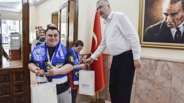 Kurtdereli Spor Salonunda sporcular ve aileleri ile birlikte 300'ü geçen katılımcıyla gerçekleşen farkındalık günü etkinliklerinde, Karacabeyli sporcular da böylelikle yer aldı. Etkinlik dönüşü Belediye Başkanı Ali Özkan'ı makamında ziyaret eden aileler teşekkürlerini ifade ederek, sağlanan imknlardan duydukları memnuniyeti dile getirdi. Spor Eğitmenleri Gülden Kanık ziyarette yaptığı açıklamada, 'Balıkesir ve çevre ilçelerden gelen down sendromlu çocuklarımıza güzel bir etkinlik düzenledik. Onların futbol müsabakaları ve ödül törenleri oldu. Akabinde katılımcılara verilen yemekte bir aradaydık. Daha sonrasında da çocuk köyünde çocuklarımızı ağırladılar, orada çok güzel vakit geçirdiler. Emeği geçenlere teşekkür ediyoruz' dedi.