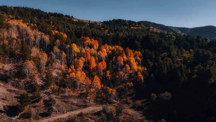Ankara'nın Çubuk ilçesinde doğal güzellikleriyle ziyaretçilerini hayran bırakan Karagöl Tabiat Parkı'nda sonbaharda adeta renk cümbüşü yaşanıyor. Dron ile havadan görüntülenen Karagöl, Çubuk ilçe merkezine 22 kilometre uzaklıkta yer alıyor. Karagöl Tabiat Parkı, içerisindeki çam, meşe, dağ kavağı ve ıhlamur ağaçlarıyla hem ziyaretçilerine hem de şehirden uzak doğayla iç içe zaman geçirmek isteyen vatandaşlara eşsiz bir manzara sunuyor.