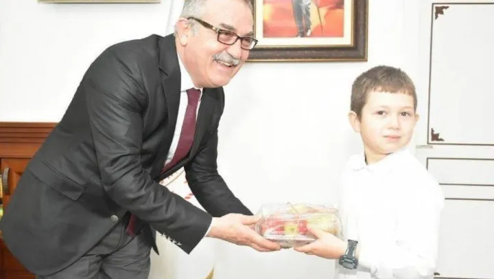 Yerli Malı Haftası sebebi ile 700. Yıl İlkokulu 2'nci sınıf öğrencileri Simay Ercan ve Ali Göktuğ Çetinkaya, Bilecik İl Milli Eğitim Müdürü Sami Akyol'u makamında ziyaret etti. Minik öğrenciler kendilerine kardeş il olarak seçmiş oldukları Gaziantep ve Amasya yöresine ait yiyecekleri Müdür Akyol'a takdim ettiler. Hem yörelerinin yiyeceklerini hem de Bilecik'in tanıtımına katkı sunmak amacıyla hediyeleşerek gönül köprüsü kuran minikler haftanın önemine dikkat çektiler.