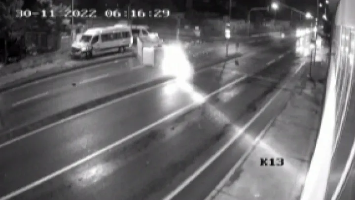 1 kişinin hayatını kaybettiği 2 kişinin ise yaralandığı feci kaza bir işyerine ait güvenlik kamerasına yansıdı. Görüntülerde, cadde içerisinden gelen servis aracıyla seyir halinde olan kamyonetin çarpıştıktan sonra kamyonetin yan yattığı görülüyor.
