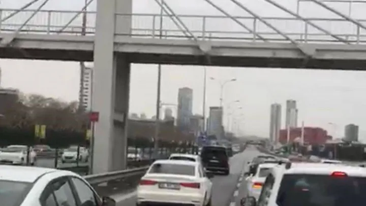 Olay, Kartal Soğanlık E5 karayolu üzerinde geçtiğimiz gün meydana geldi. İddiaya göre, düğün konvoyu oluşturan sürücüler, diğer sürücülerin geçişini engelledi. Bir süre bu şekilde kornalar eşliğinde yollarına devam ederek trafik oluşmasına neden olan konvoydakiler, diğer sürücülere de zor anlar yaşattı. Trafiği tehlikeye düşüren sürücüler cep telefonu kamerasına yansıdı. Görüntülerde, şeritleri kapatan sürücülerin diğer araçların geçişine engel olduğu görülüyor.