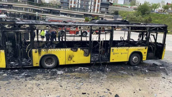 Kartal'da park halindeki İETT otobüsü alev alev yandı