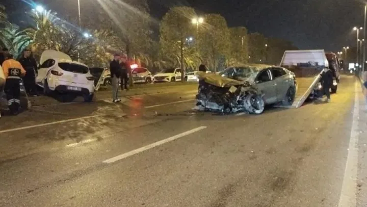 Çarpışma sonucu araçlardan biri savrularak refüjdeki ağaca çarptı, biri kaldırım ve bariyerlere çarparak durabildi, biri yine orta refüje çıkarak ters döndü.