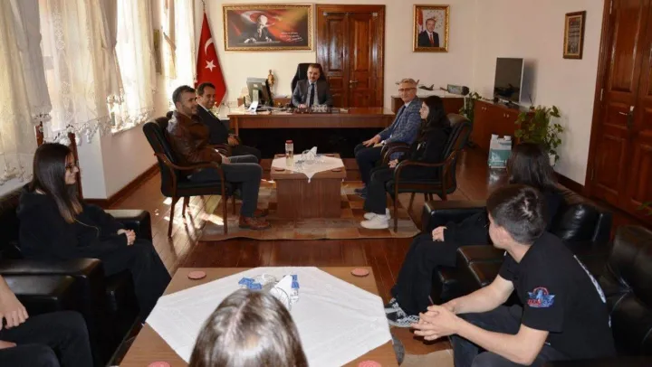 Balıkesir'in Edremit Kaymakamı Ahmet Odabaş TEKNOFEST Tübitak İnsansız Hava Araçları Yarışması Sabit Kanat kategorisine katılarak büyük başarı elde eden ve 'Kocaseyit İnsansız Hava Aracı' ile Teknofest finallerine katılmaya hak kazanan öğrencileri ve öğretmenleri makamında ağırlayarak, tebrik etti.