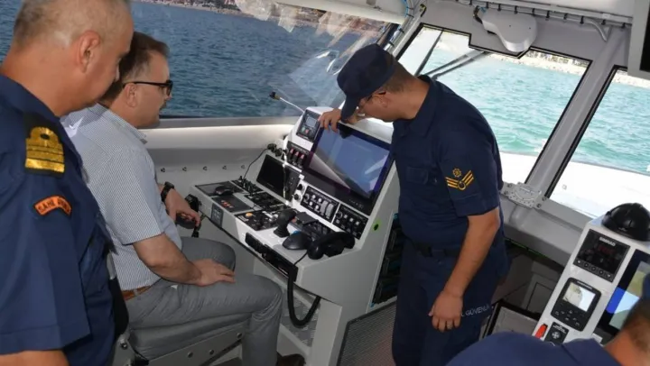 Sahil Güvenlik Akçay Kolluk Destek Tim Komutanlığınca Edremit körfezinde gerçekleştirilen denetimler hakkında bilgiler alan Kaymakam Odabaş, Sahil Güvenlik Kuzey Ege Grup Komutanlığına bağlı İlçemiz Akçay Kolluk Destek Tim Komutanlığı uhdesi ve emrine görevlendirilen KB-111 borda numaralı kontrol bot ile sahil denetimine katıldı.