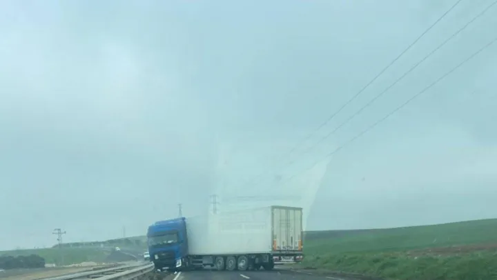 Tekirdağ'ın Muratlı-Süleymanpaşa yolunda kontrolden çıkarak önce tarlaya, ardından orta refüje çarparak durabilen tırın kaza anları, araç kamerasına anbean yansıdı.
