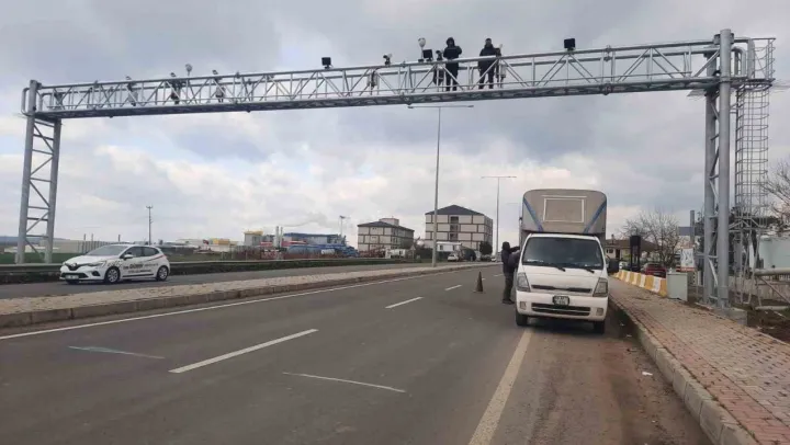 Kazada zarar gören otoyol plaka tanıma sistemi direği yenilendi