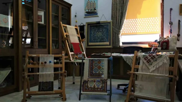 Estergon Kalesi'ndeki sekiz atölyeden biri olan dokuma atölyesinde halının yanı sıra kilim, heybe, örtü ve çanta türü çeşitli süs eşyaları da dokunuyor.