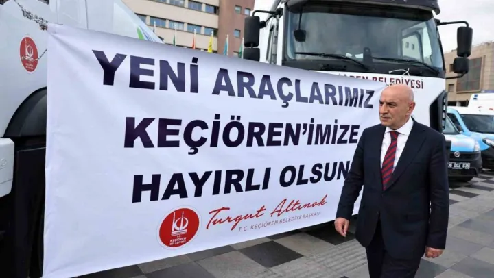 Yeni hizmet araçlarını inceleyen Keçiören Belediye Başkanı Turgut Altınok, 'Kiralık araçlara ödeme yapmak yerine satın alma yoluna giderek Keçiören'imize yeni hizmet araçlarımızı kazandırmaya devam ediyoruz. Daha önce satın aldığımız 230'dan fazla hizmet aracımızla Keçiören'e daha hızlı hizmet vermeye devam ediyoruz. Beytülmalı kendi malımızdan daha çok koruyor ve korumaya da devam ediyoruz. Belediyemizde nasıl tasarruf yaparız, belediyemizi nasıl daha fazla hizmet üretir hale getiririz bunun gayesini taşıyoruz. Araçlar Keçiören'in aracıdır, vatandaşın hizmet etmek için kullanılacaktır. Yeni araçlarımız hayırlı hizmetlere vesile olsun' dedi.
