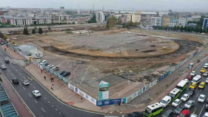Tamamlandığında cazibe merkezi olması beklenen İzmit Kent Meydanı'nda temel demir imalatları, yağmursuyu altyapı ve hafriyat çalışmaları yapılıyor.