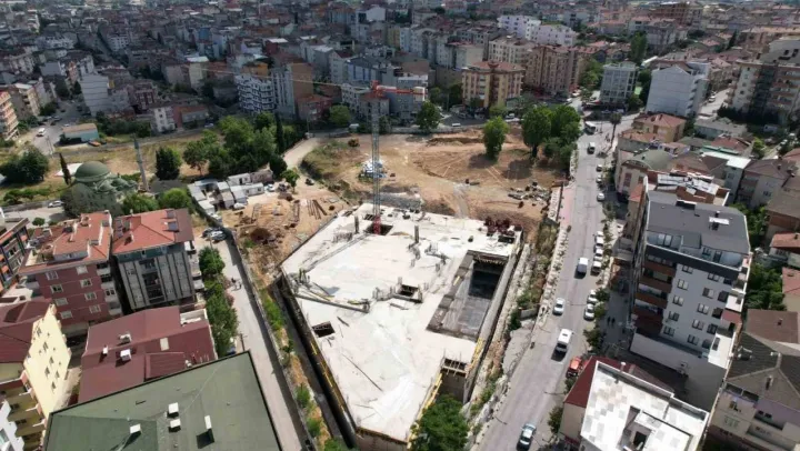 Çayırova Belediyesi'nin Kocaeli Büyükşehir Belediyesi ile birlikte hayata geçirdiği kent meydanında üç katlı otoparkın kaba inşaatı tamamlandı.