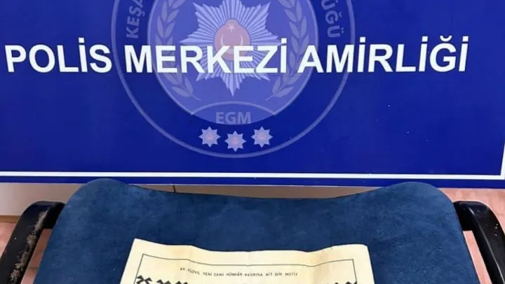 Edirne'nin Keşan ilçesinde, hakkında aranma kaydı bulunan şahıs, İlçe Emniyet Müdürlüğü tarafından, üzerinde 14 parça tarihi eser ve motiflerin basılı olduğu kağıtlar ile yakalandı.