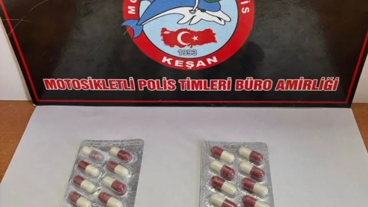 Alınan bilgiye göre; Yeninmescit Mahallesi Koru Sokak üzerinde durumundan şüphelendikleri İ.S.'yi durduran Keşan İlçe Emniyet Müdürlüğü ekipleri, şüphelinin üst aramasında, 28 adet sentetik ecza ele geçirdi. Gözaltına alınan İ.S. hakkında adli işlem başlatıldı.