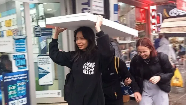 Yağış sebebiyle bazı vatandaşlar şemsiyeleriyle korunmaya çalışırken, bazıları da otobüs durakları, dükkanların tenteleri altında korunmaya çalıştı.