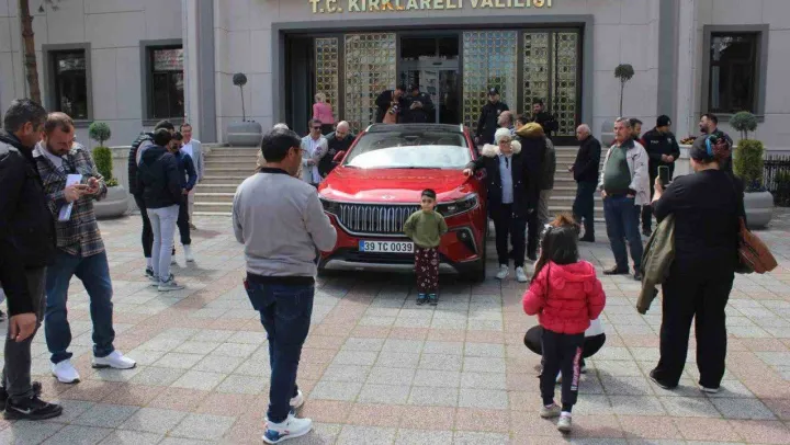 Türkiye'nin yerli ve milli otomobili Togg, Tarihi Kırklareli Valiliği önünde sergilendi. Valilik önünde yerli otomobili gören vatandaşlar araca ilgi göstererek, telefonla fotoğraf çekilme yarışına girdi.