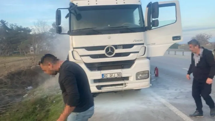 Kırklareli'nin Babaeski ilçesinde seyir halindeki bir kamyonda çıkan yangın, sürücü ve vatandaşların müdahalesiyle söndürüldü.