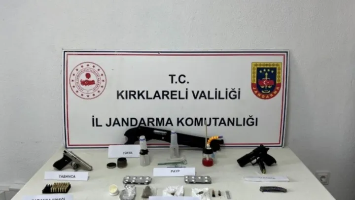 Operasyonda yapılan aramalarda bir miktar uyuşturucu, 2 ruhsatsız tabanca ile tüfek geçirildi.