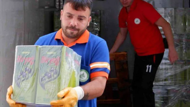 Kamyona yüklenen tenekeler dolusu yağlar, Sarayiçi Er Meydanı'na getirildi. Burada yetkililere teslim edilen yağlar, güreşlerde kullanılacak.