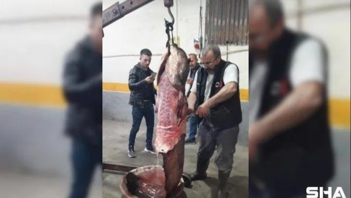 Bursa'nın Mustafakemalpaşa ilçesinde oltayla dev yayın balığı yakalandı. 2.2 metrelik balık, görenleri hayretler içinde bıraktı.