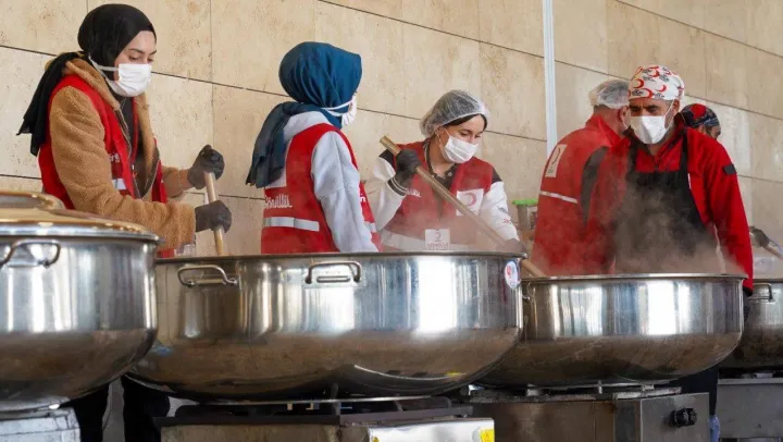 Kızılay ve Kızılay'ın koordinasyonundaki Afet Beslenme Platformu üyesi kurum ve kuruluşlar bugüne kadar günde 3 öğün olmak üzere yaklaşık 264 milyon kişilik sıcak yemek çıkartarak afetzedelere beslenme desteği sağladı. Afet Beslenme Grubu, depremden etkilenen 10 il 49 ilçede bulunan 1,6 milyon afetzedeye Ramazan ayında da 3 öğün sıcak yemek dağıtımı kesintisiz devam ettiriyor. Akşam yemeklerinin dağıtımı iftar saatlerinde gerçekleştirilirken oruç tutmayan afetzedeler içinde sabah ve öğle yemek dağıtımları aynı noktalarda ve çadır kentlerde yapılıyor. İftar menüsünün yanında afetzedelere sahurluk/kahvaltılık kumanya dağıtılıyor.